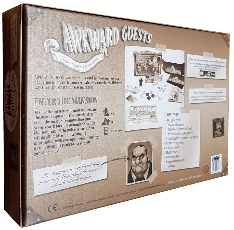 Awkward Guests is a one-of-a-kind deduction game with infinite re-playability. You can recreate Mr. Walton’s murder in so many different ways that you won’t ever play two similar games! (Mr. Walton will not thank you for doing this.)