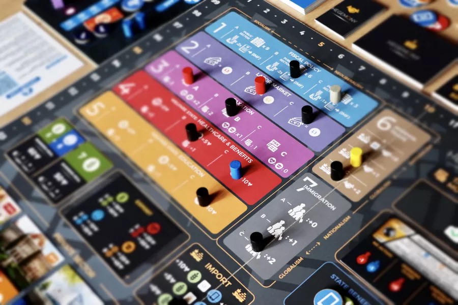 While players have their own separate goals, they are all limited by a series of policies that affect most of their actions, like Taxation, Labor Market, Foreign Trade etc. Voting on those policies and using their influence to change them is also very important. Through careful planning, strategic actions and political maneuvering, you will do your best to increase the power of your class and carry out your agenda. Will you be the one to lead your class to victory?