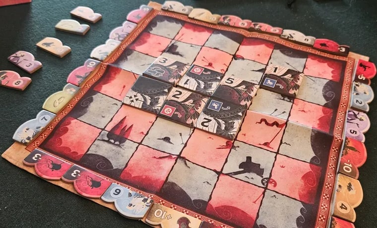 Iliad is a tile-placement strategy game for two-players by Reiner Knizia. Both players have symmetrical pools of tiles, with their strength ranging from 1-5, along with the Dolos tile that mimics your opponent’s adjacent tiles. The key to victory lies behind the relentless tension of where and when to commit your tiles.