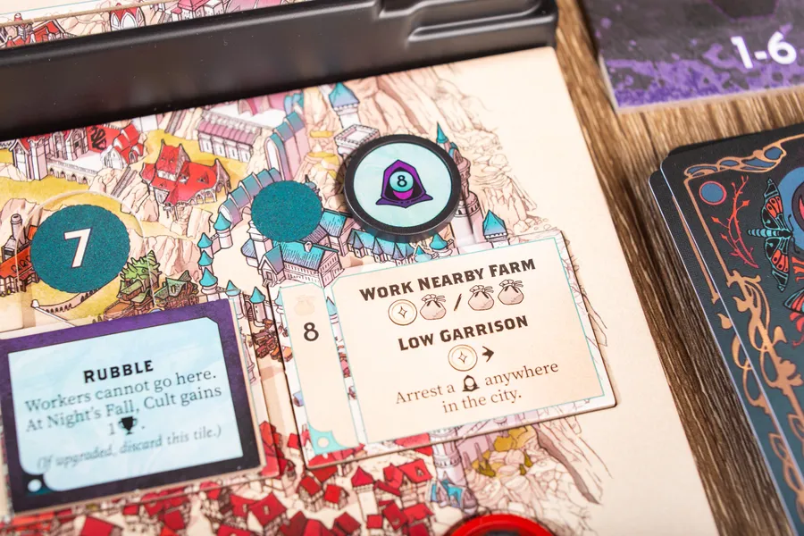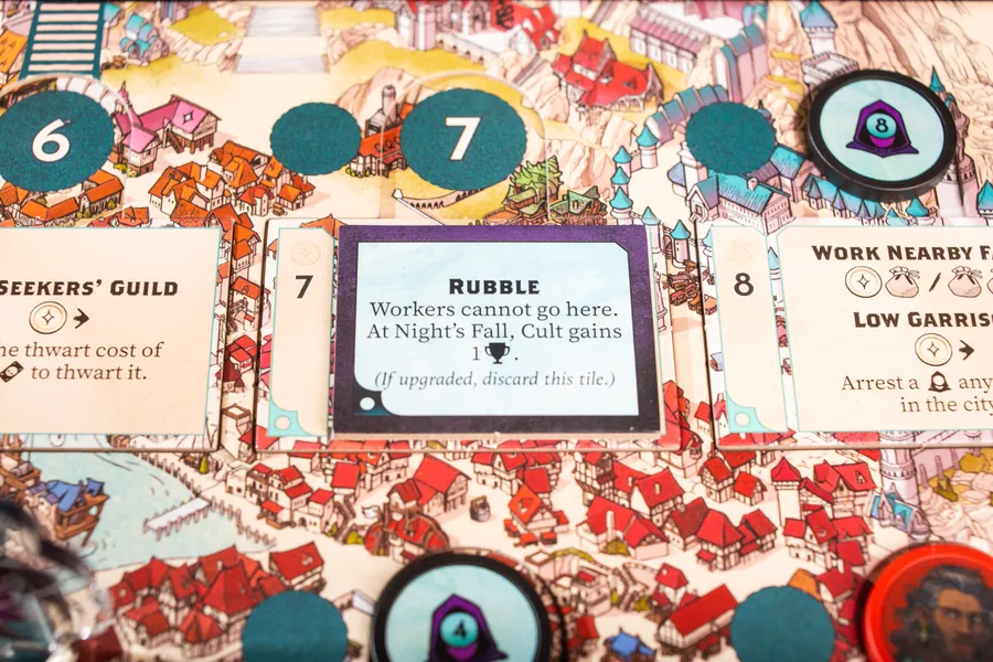 Take turns sending your workers to collect resources, upgrade buildings, and construct new Kinfire lighthouses in the surrounding area, while the Cult of Altan interferes with your plans and undermines your authority. You’ll vote on important city policies, arrest cultists, and dispatch your Seeker to thwart threats looming over the final bastion of civilization, the great city of Din’Lux.