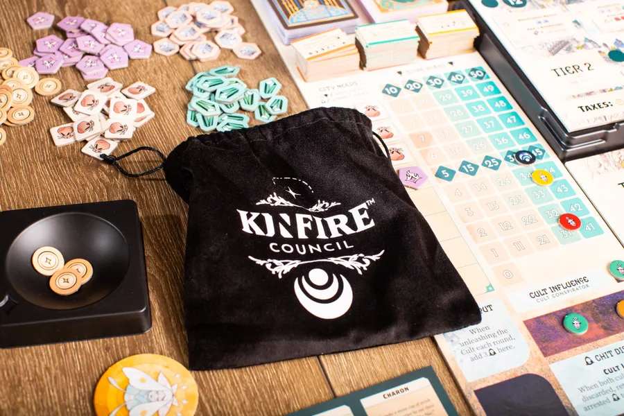 Kinfire Council is a competitive game of strategy and politics. As a member of the Council, you’ve been charged with rebuilding the great city of Din’Lux and defending it from the dangers of the Starless Nights.