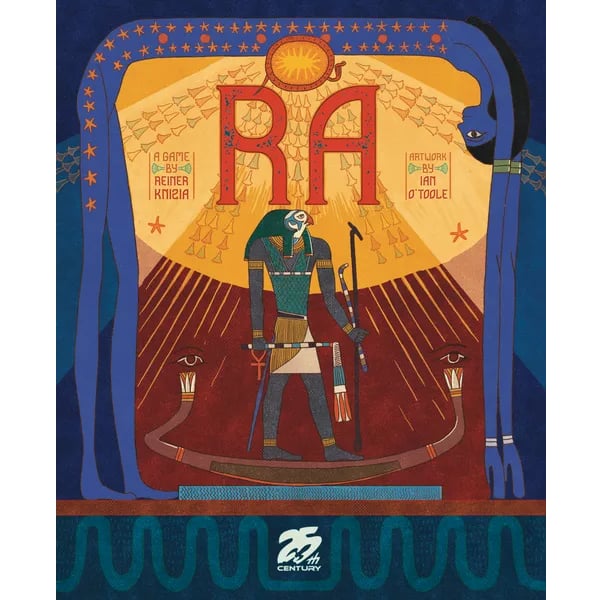 The players seek to expand their power and fame and there are many ways to accomplish this: Influencing Pharaohs, Building monuments, Farming on the Nile, Paying homage to the Gods, Advancing the technology and culture of the people. Ra is an auction and set collecting game where players may choose to take risks for great rewards or… And all this is for the glory of the Sun God Ra!