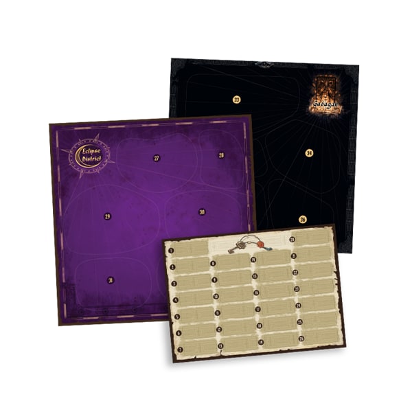 The three sticker sheets from Fateforge: The Chronicles of Kaan allow you to start the game all over again, without previously explored areas being revealed.