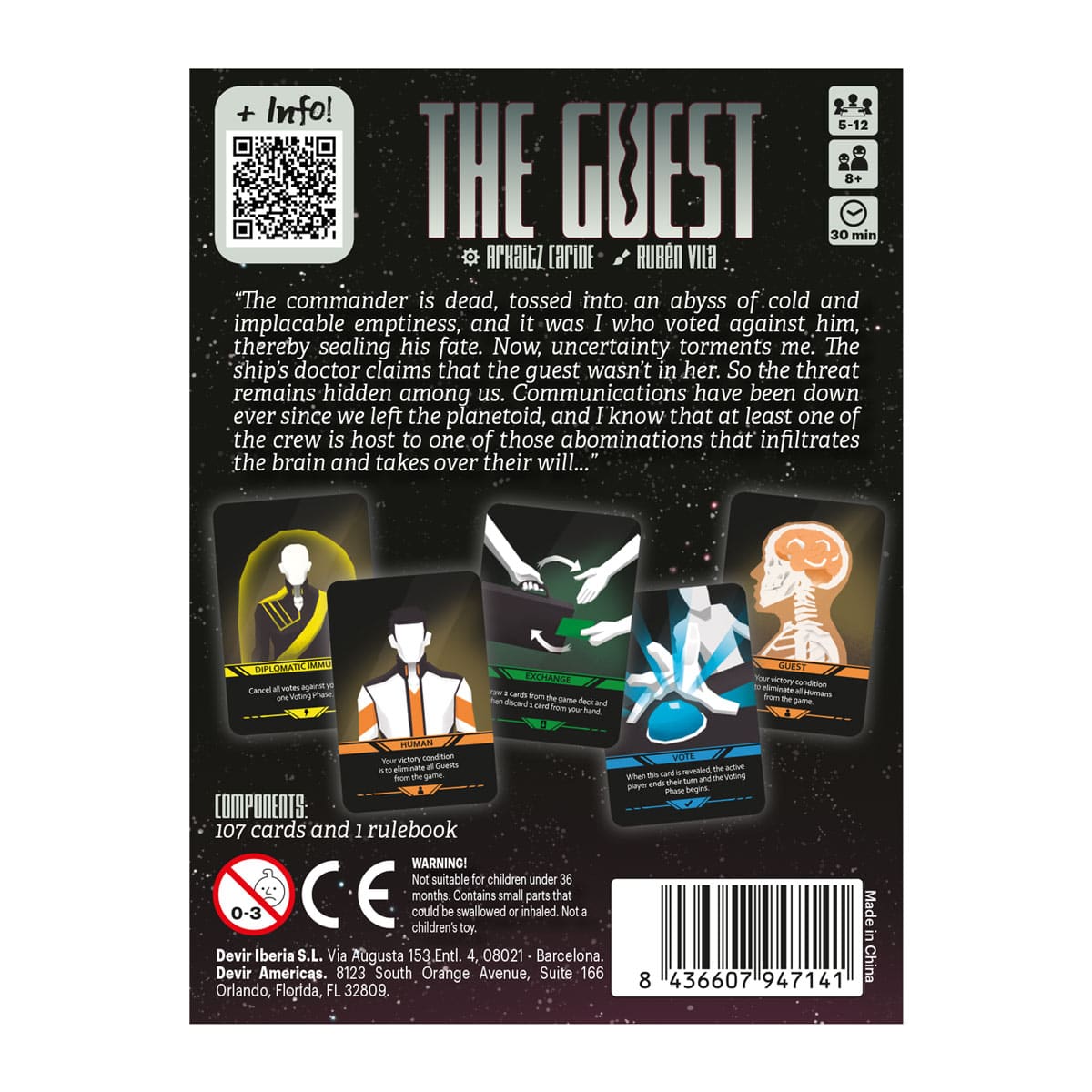 In The Guest, players will represent the crew of the extrasolar ship Beagle, which is attacked by a strange parasite that lodges itself in people’s brains, controlling their will. A hidden role game in which the tension is real in each vote. Some players will represent infected crew members who try to infect or kill the rest, and others will be healthy crew members who try to safely reach the Aurora space station.